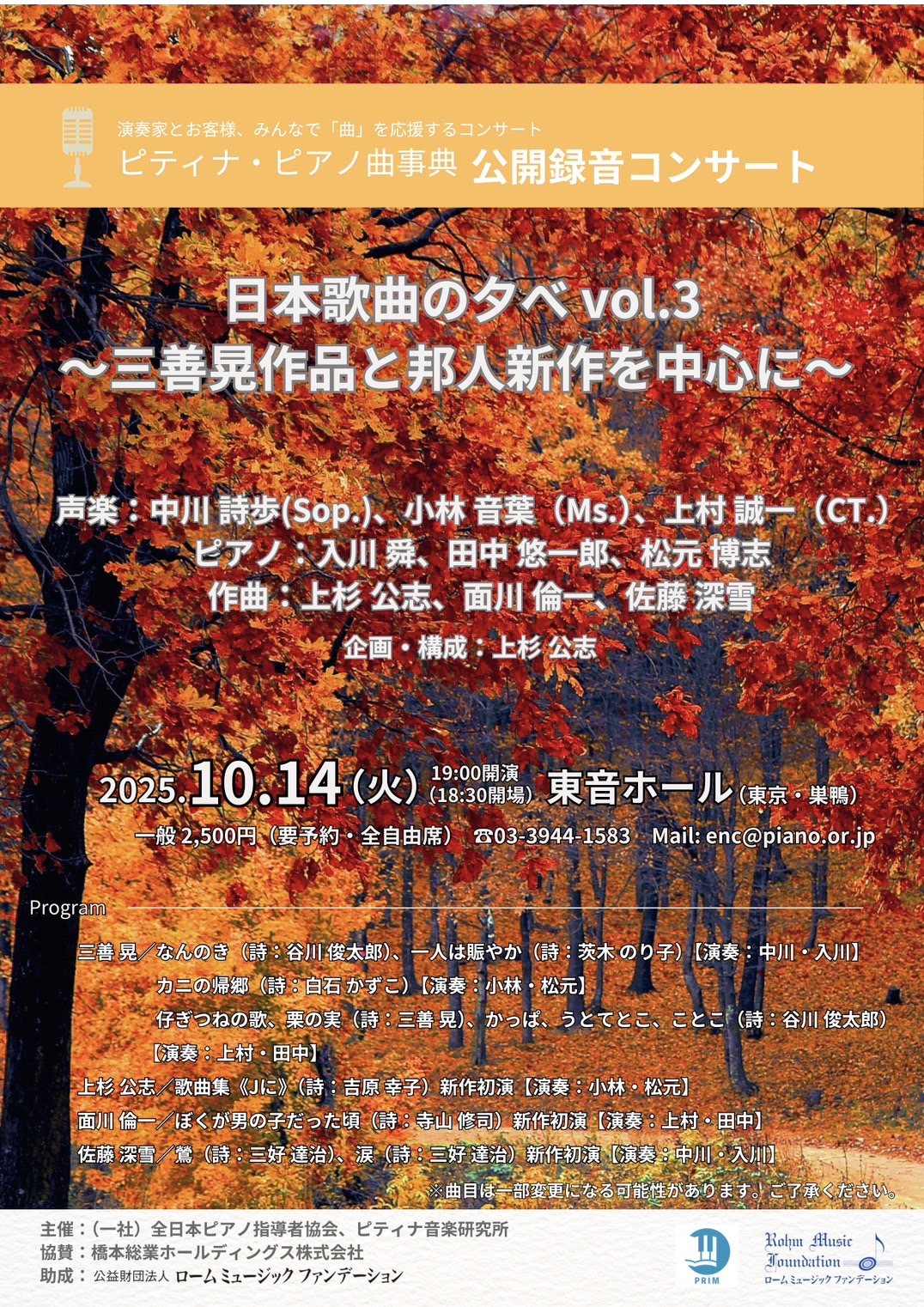 日本歌曲の夕べVol.3〜三善晃作品と邦人新作を中心に